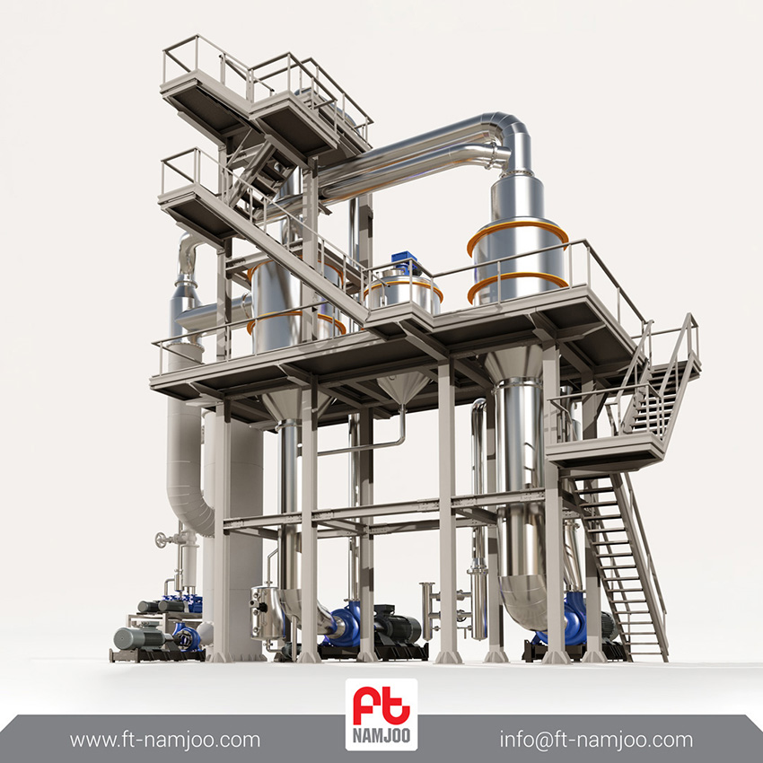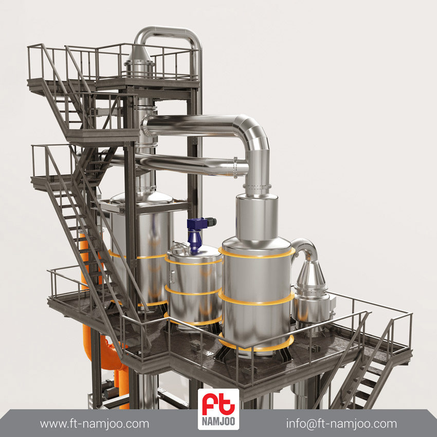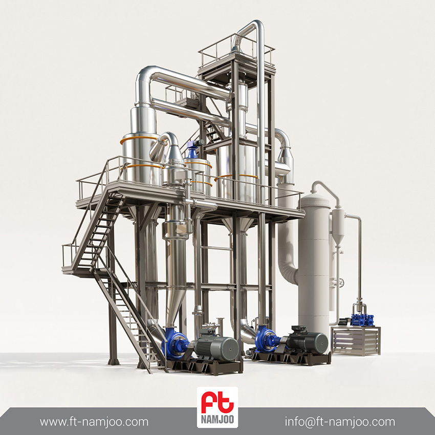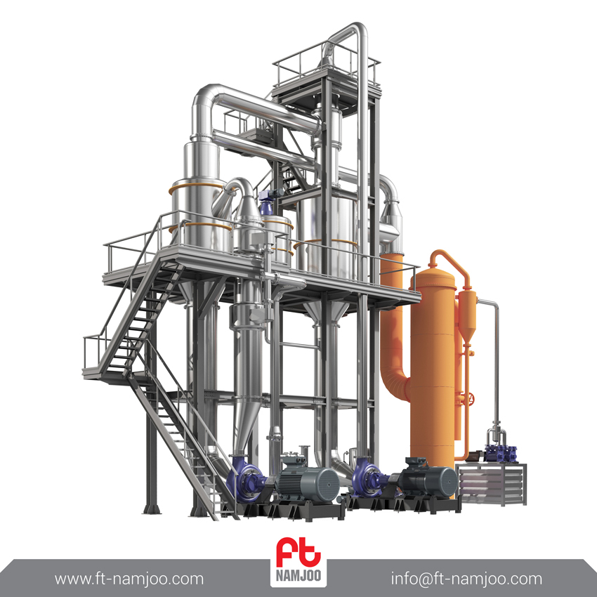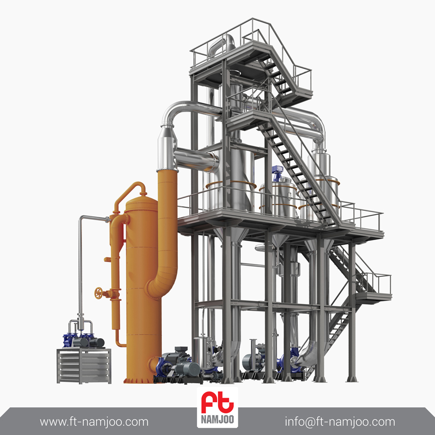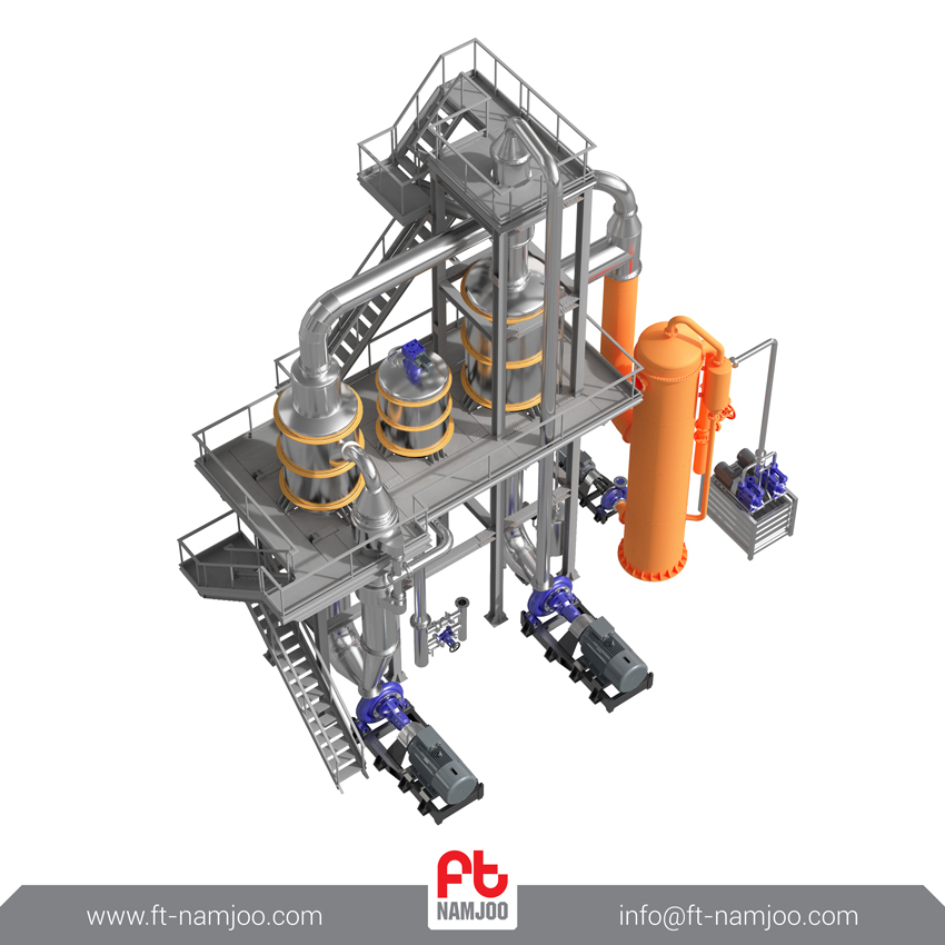 سیستم تغلیظ کننده محصول پیچیده ترین قسمت خطوط تولید کارخانه های رب گوجه فرنگی است. دستگاه تغلیظ کننده تحت خلأ کانتینیوس توانایی تغلیظ محصول به صورت جریانی مداوم و پیوسته را داراست. دستگاه تغلیظ کننده تحت خلأ کانتینیوس محصول را در یک فرایند سیرکولاسیون دو مرحله ای مداوم تغلیظ می کند و به غلظت موردنظر می رساند. این سیستم تغلیظ کننده در حجم های بالای تولید از کارایی و راندمان بالایی برخوردار است.